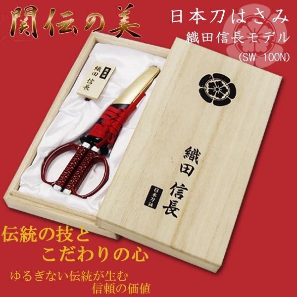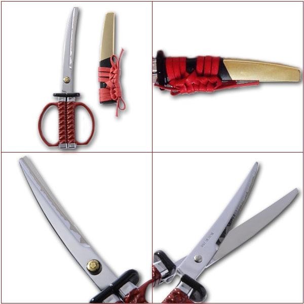 | 織田信長をイメージした日本刀はさみです。要ネジ部には家紋の織田木瓜が施されております。手になじんで握りやすい本漆(越前塗り)ハンドル、丈夫で傷つきにくいクロムメッキ仕上げの刃体。大事な人への贈り物として使える桐箱入りです。 |