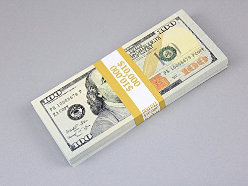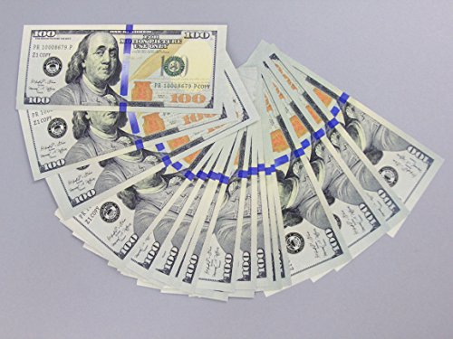 The Official PROP MOVIE MONEY's New Style $100 Full Print production prop money stack with 100 color double sided prop copy fake bills and current removable bank strap. All of our money are props created, designed and copyrighted by Production Props & Media Designs LLC associated with PROP MOVIE MONEY the #1 prop money company in USA. Professionally supplying money props to Hollywood Studios, TV and Independent film studios worldwide. Don't settle for cheesy prop money. Trust the pros, your production deserves the best money props! ------>VISIT OUR AMAZON STORE FOR MORE OF OUR PROP MONEY PRODUCTS: https://www.amazon.com/propmoviemoneyFeature
