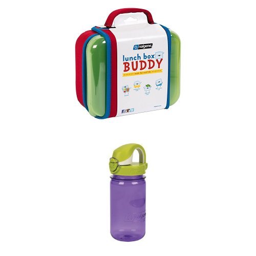 Nalgene Buddy Lunch Box, Red and Nalgene Kids OTF Bottle with Green Cap, 12 oz, Purple