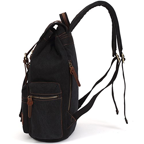 -. Feature : 1.Eco-friendly casual life style. Material: Canvas, 95% 16oz canvas+5% Genuine leather. / 2.Fashionable wicker zipper backpcak.Size: 11*6*16 inches (L*W*H)/(L27*W16*H41 CM) Good handfeel and Light backpack.It's convenient to hand out, go hiking,traveling,go to school and so on. / 3.School backpack Perfect for student and teenagers,large capacity for books.Your best choice for travelling,contaning all your necessities. / 4.Sufficient use of multiple pockets:1*front zippered pocket, 2*side zippered pocket and .Compartments: 1*laptop/tablet compartment (28cm width up to 14" laptop), 1*inner zipper pocket.Function division in Interior(cell phone,keys,cards,laptop etc.) / 5.Hardware accessories:Using the fashional solid light-color hardware, through special multi-layer electic bartacking and processing, acid oxidation,against rot, good quality and durable.