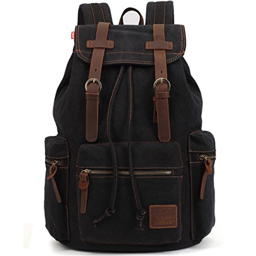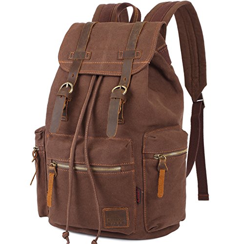 -. Title : KAUKKO Retro Canvas Schoolbag Casual Satchel Backpack Multi-Functional Rucksack