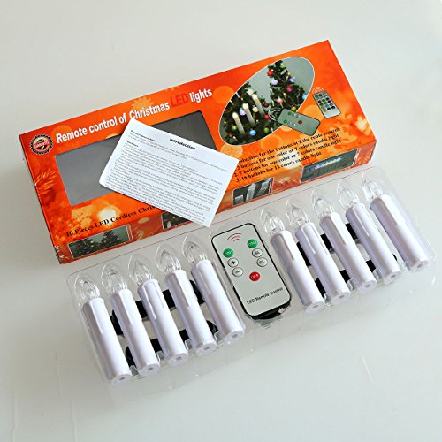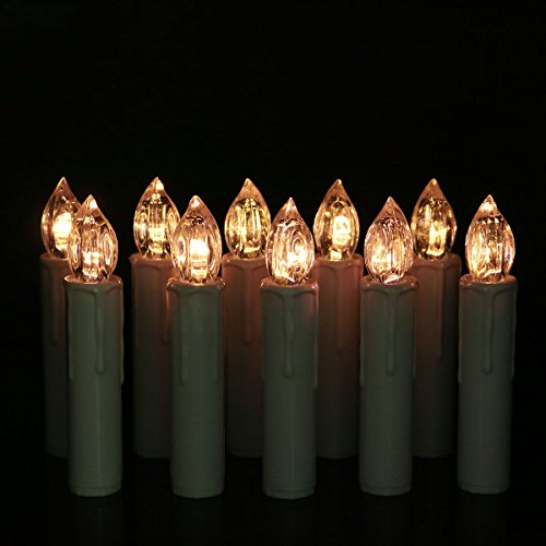 - PERFECT LED TAPER CANDLE: pack of 10, real wax amber LED light and black surface LED taper candle, powered by two AA batteries(not included), with removable clips,easy to hanging on Christmas Tree, standard size with 0.67’’Dx4’’H.