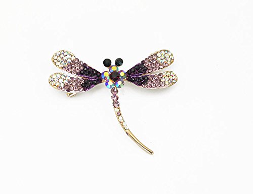-. Title : Gold Plated Full Inlay Austrian AB Crystal Dragonfly Brooch and Pin -Gift Packaging Included