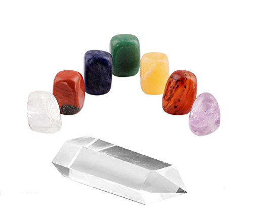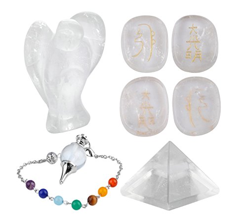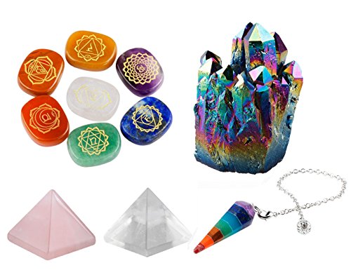 Healing Crystal- Kit includes 7pcs Chakra Stones,1pc Pendulum,1pc Titanium Coated Quartz,1pc Rose Quartz Pyramid,1pc Rock Quartz Pyramid