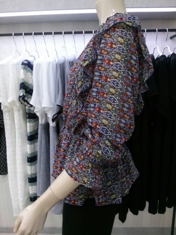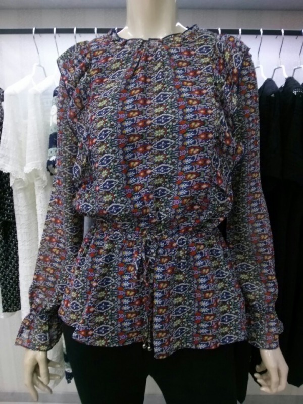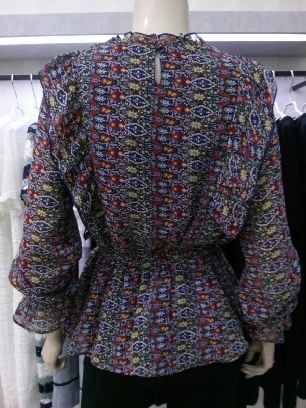 네크라인과 소매프릴 허리밴딩 디테일로 러블리한 블라우스~~^^