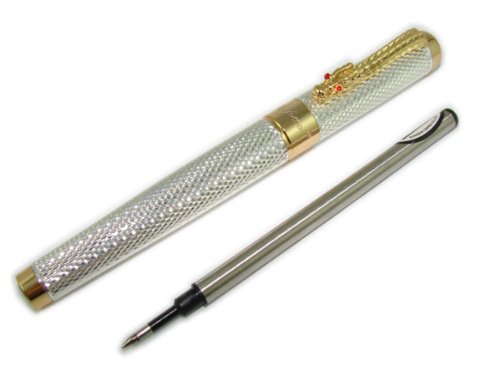 Lanxivi® Jinhao 1200 Roller Ball Pen Silver Rain Dragon Clip with Pen Pouch