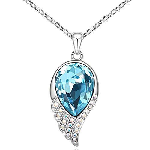 -. Title : Sojewe Silver tone Angel Fly Wing Pendant Necklace Blue Swarovski Elements Crystal 18" Chain for Women