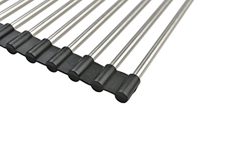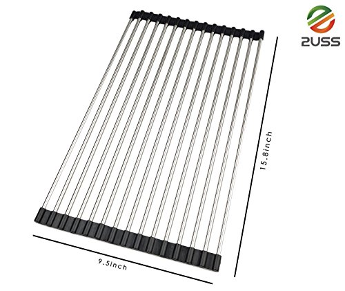 2USS Multipurpose Roll Up Dish Drying Rack 18/8 Stainless Steel,Over the Sink,Rollable, Foldable,and Easy to Store (15 pieces Drainer, Black)-15.8(L)9.5(W)0.5(H)