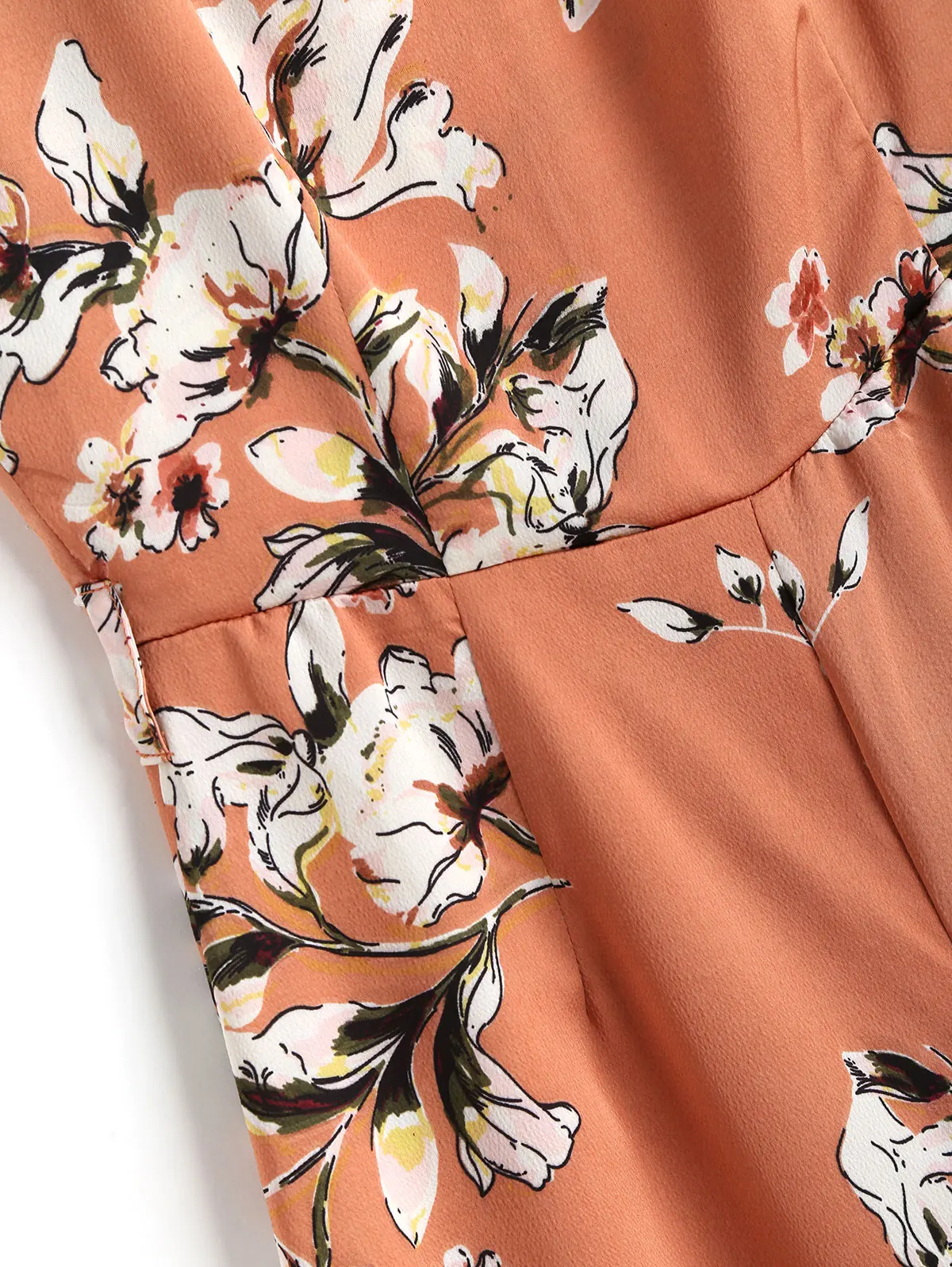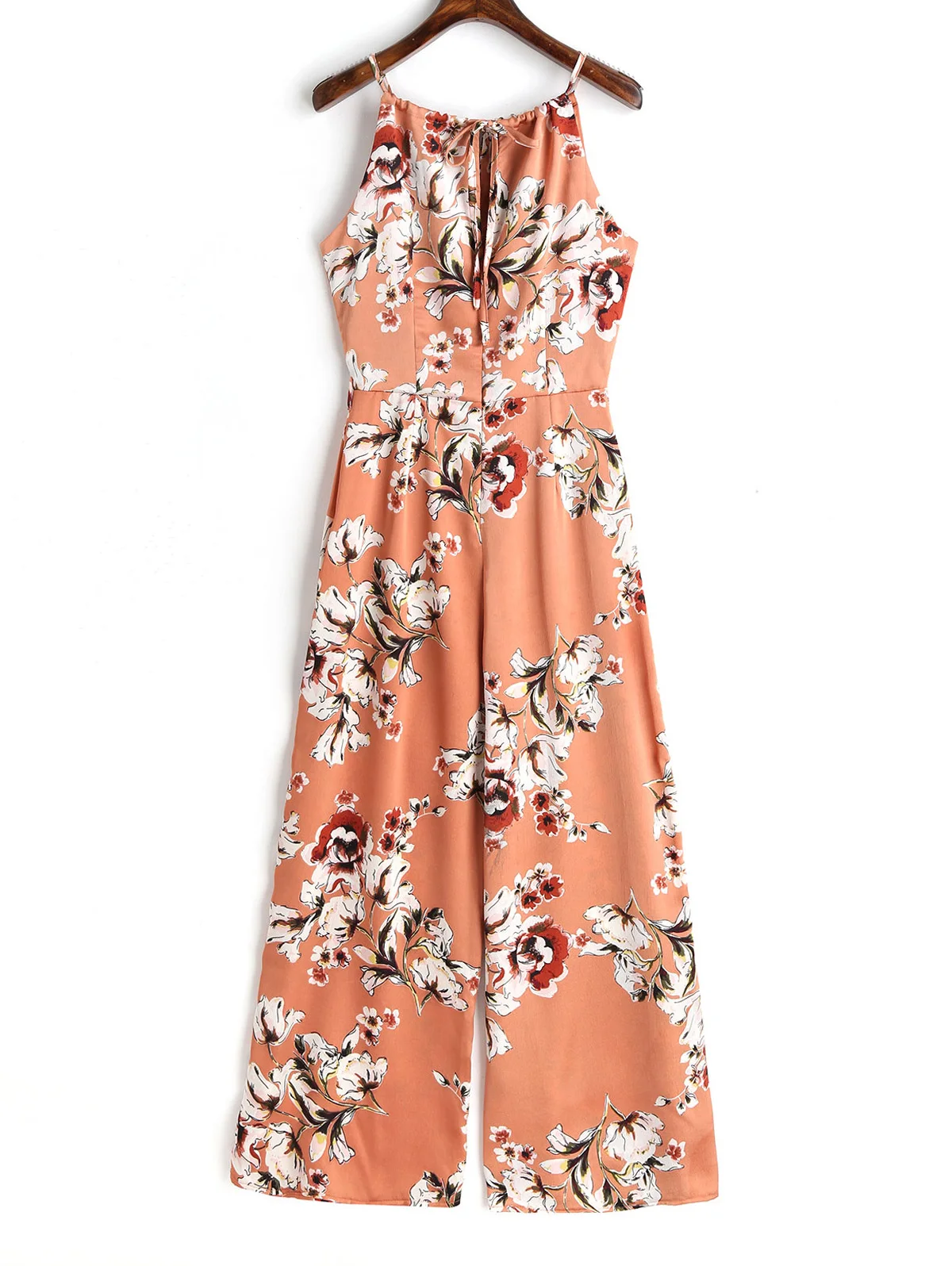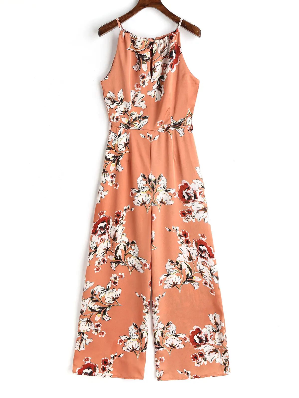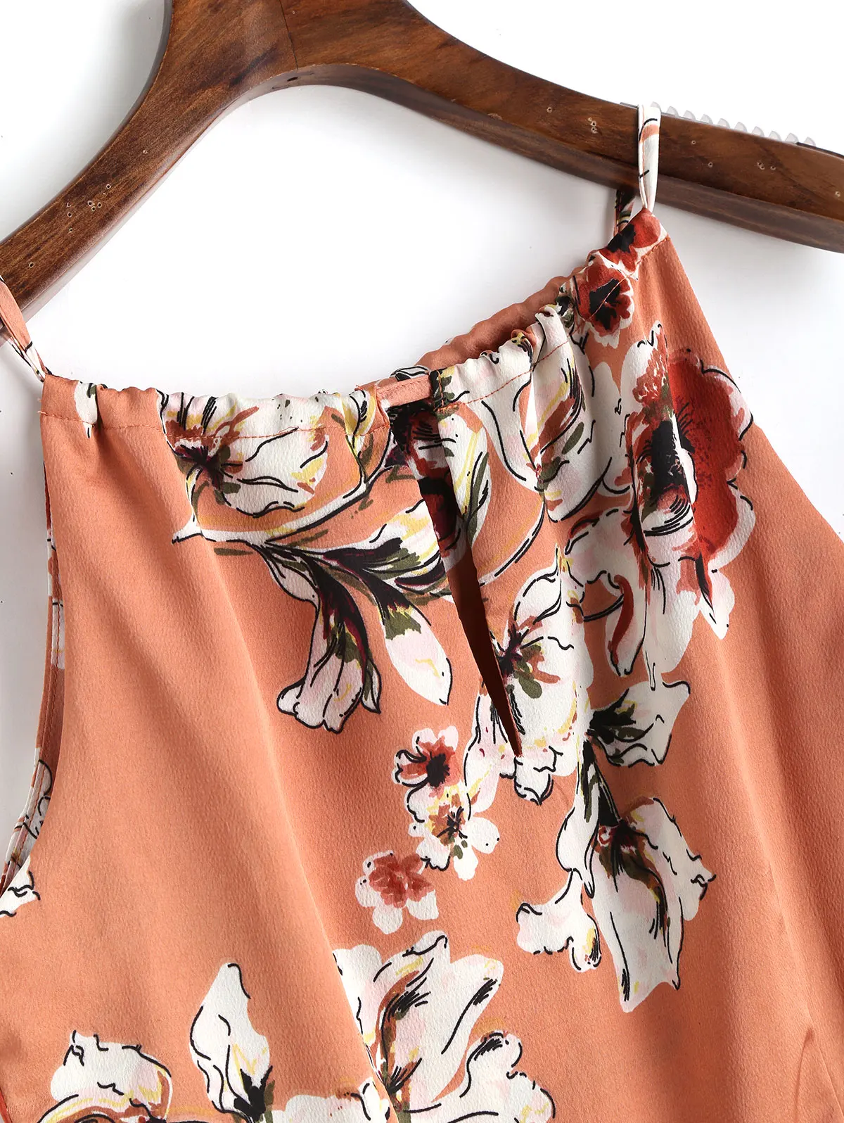 Model Number:V0410001 Back Zipper Floral Cami Jumpsuit
