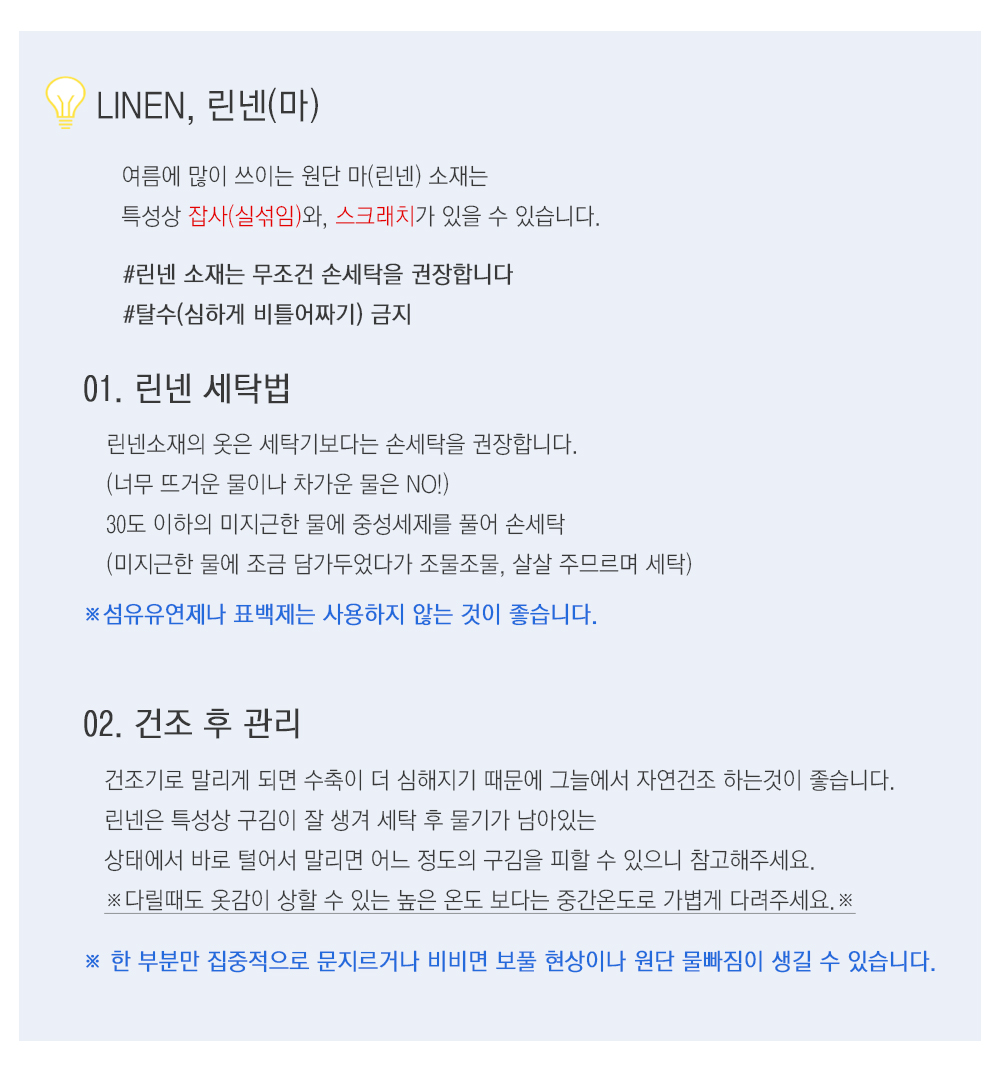 린넨과 레이온 혼방 소재로 시원하면서 고급스러움이