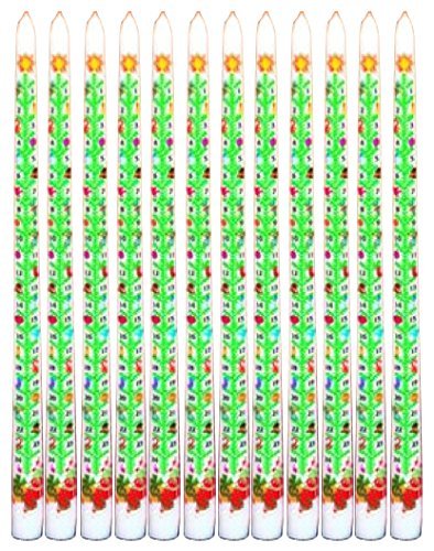 Studio : Miles Kimball Publisher : Miles Kimball Binding : Kitchen Product Description Description A lovely way to anticipate the coming of Christmas. White candle is 14 3/4" high and decorated with holiday symbols, plus dates of the 24 days of Advent. Burn Advent candle one day at a time until Christmas Eve Children and adults alike will enjoy the countdown. The 14 3/4" high, 7/8"dia. candle fits any standard holder. 0