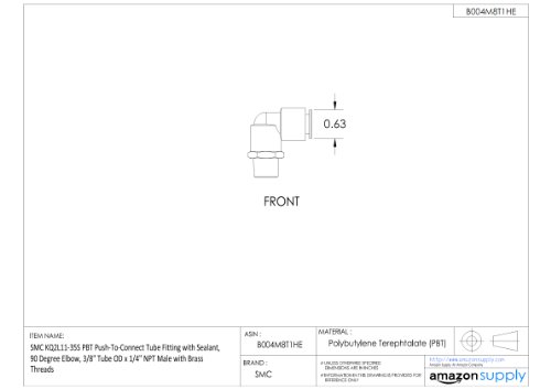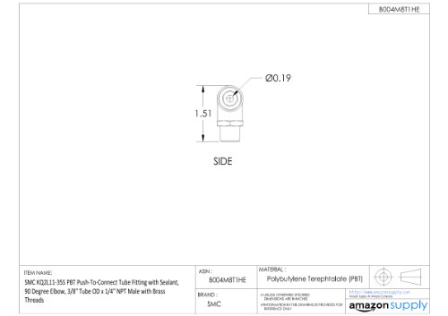SMC KQ2L11-35AS PBT & Brass Push-to-Connect Tube Fitting with Sealant, 90 Degree Elbow, 3/8" Tube OD x 1/4" NPT Male