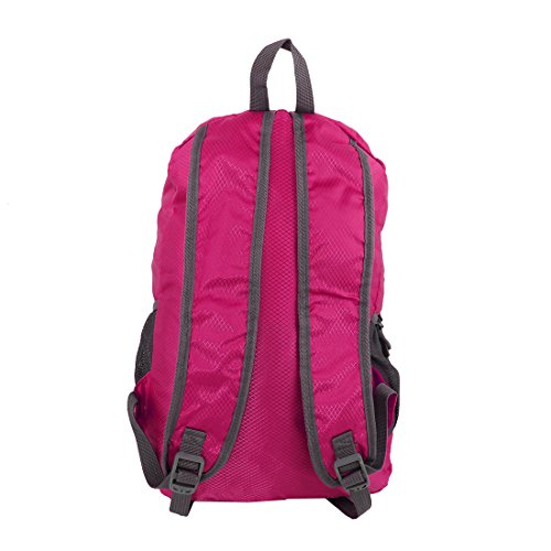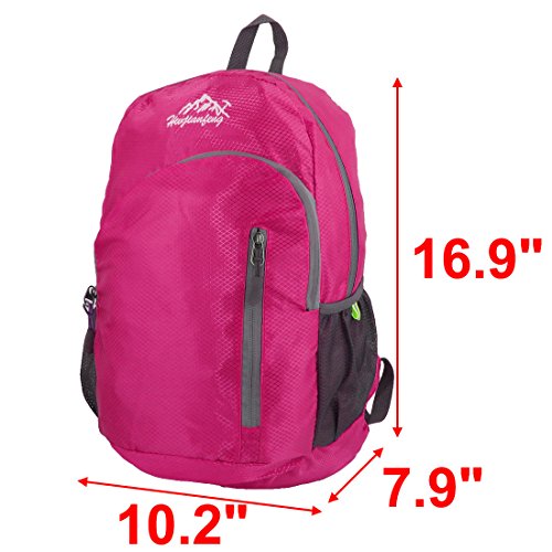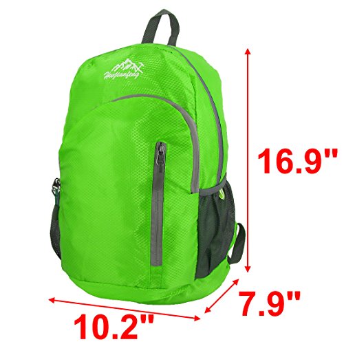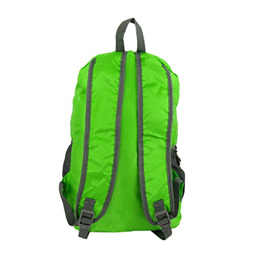 Studio : uxcell Publisher : uxcell Binding : Misc. Product Description Made from water resistant nylon material, provide strengthen and long-lasting performance with minimal weight. Stress points are reinforced with bar tacking for increased longevity. This backpack with a breathable mesh shoulder strap for comfort and to create some airflow so you are not sweating all over your backpack. Durable abrasion resistant metal zipper across the backpack. Folds into zipped inner pocket to fit anywhere, and unfolds from pocket to backpack in seconds. Features a classic shape with several pockets for storage and organization. This backpack has a roomy main compartment, two front pocket, a interlayer, and two side pockets. Perfect for dayhiking,cycling,climbing,camping,hiking or other outdoor sports. Available Color: Green, Blue, Purple, Orange, Fuchsia.