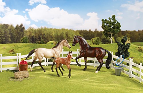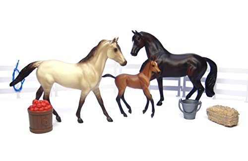 -. Feature : Classics are 1:12 Scale, with hand-painted details and all the quality you expect from Breyer! / Breyer's most realistic junior collector line. / Designed to give horse-savvy young collectors the true-to-life horse details they crave for active role play. / This is a wonderful starter set for young horse collectors! / Set includes a beautiful stallion, mare and foal / For additional play, the set includes fencing, bucket, apple barrel, hose and hay bale