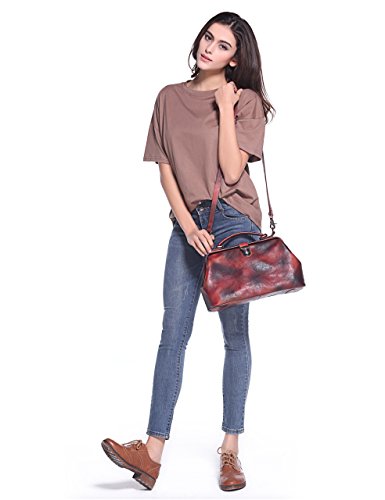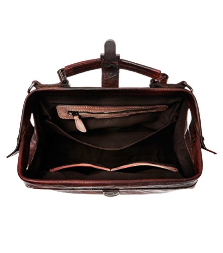 Distressed dip-dye leather bag, classic doctor bag style featuring an old-fashion look. Has both grab handles and a crossbody option (with a removable adjustable long strap).