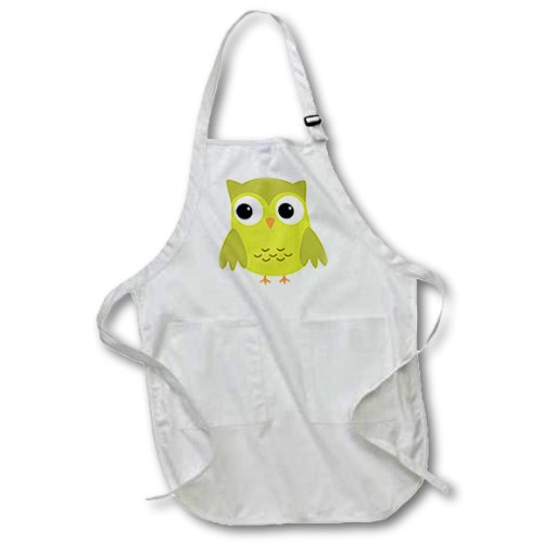 3dRose apr_58280_1 Cute Green Owl-Full Length Apron with Pockets, 22 by 30-Inch, White