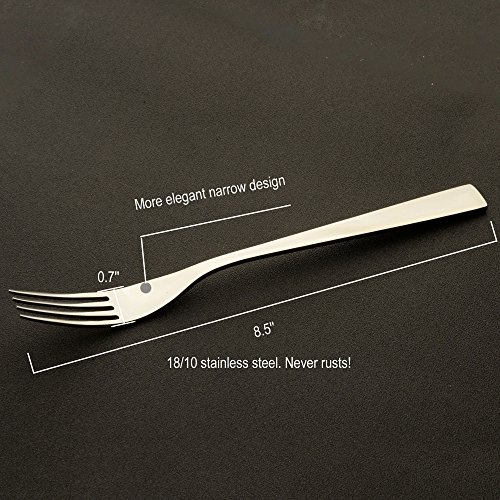 - Pay attention to its SKINNY design. This set are not traditional size. It is narrower than normal size and give you a more elegant look. Length: 8.5 inch (21.8cm), Width: 0.7 inch (1.8cm). Weight: 0.7lb (311g/6 pics). Each fork weighs 0.114lb / 51.8g. Comes with IMEEA lifetime warranty, buy with confidence!