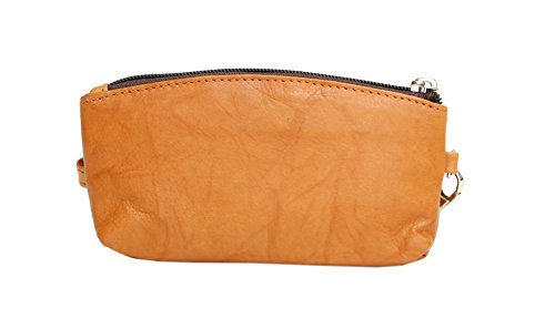 -. Feature : Genuine full-grain leather / Top zipper closure / Removable wrist strap / Additional exterior open pocket / Dimensions: 3.94"H x 6.69"W x 1.18"D
