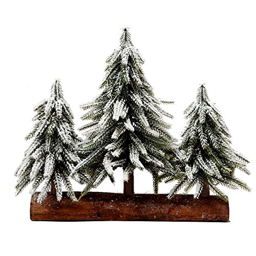 3 Small Christmas Tree with Wood Stand Flocked Snow Christmas Decoration Tabletop centerpiece