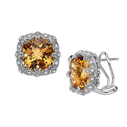 -. Title : 8 ct Natural Citrine & 1/6 ct Diamond Stud Earrings in Sterling Silver