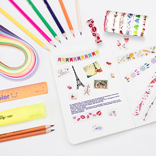 - HIGH QUALITY TAPE : Washi tape Japanese eco-friendly paper, colorful, and reliable.,decorative washi tape is very sticky, The colors are really pretty and cheery and they look wonderful on the pages. after they are placed on paper sticky enough to keep placed and repositioned without leaving residue