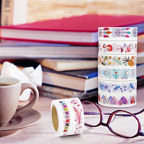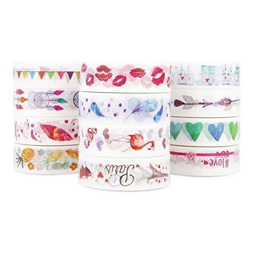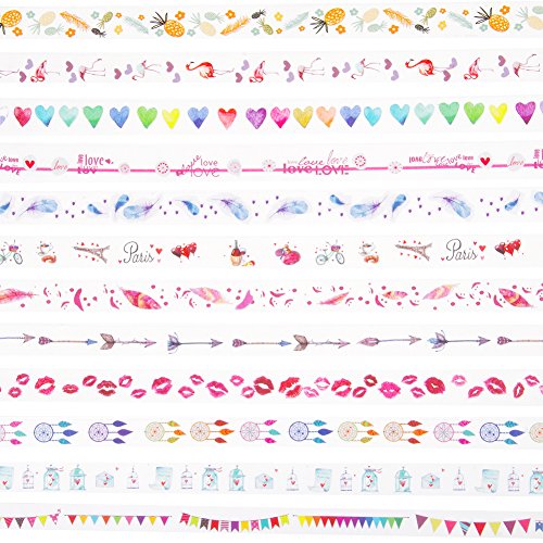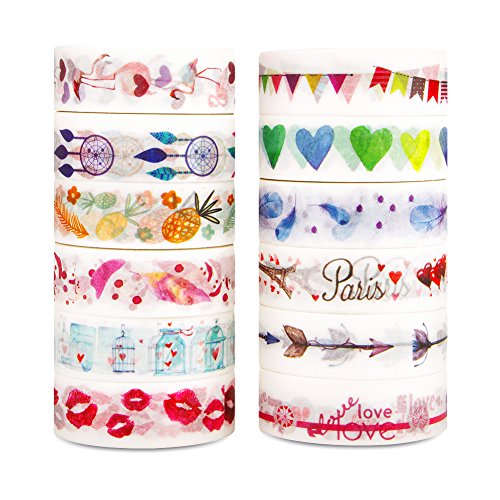 - PACKAGE INCLUDES: 12rolls different unique patterns, Pineapple, kiss,love, heart, dream catcher, feather , Paris, flamingo, flag, arrow, envelope。