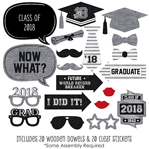 20-Piece Graduation Party Photo Booth Props Kit INCLUDES 20 All Star Grad photo booth props, 20 wooden dowel sticks and adhesives for assembly. EASY ASSEMBLY: Simply attach the printed DIY photo booth props to the wooden dowels with included adhesive and reinforcing stickers.