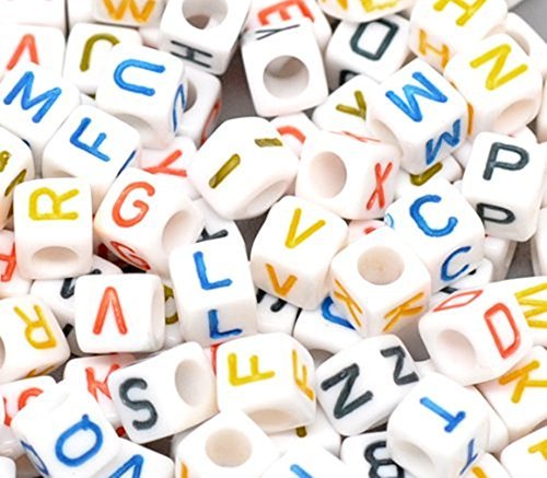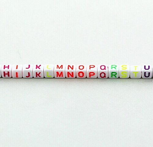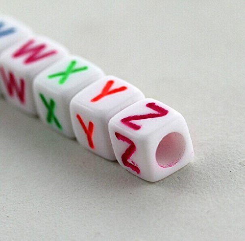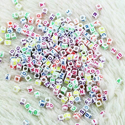 YUETON 500PCS 6MM MIXED COLOR ON WHITE ACRYLIC ALPHABET LETTER CUBE SPACER BEADS