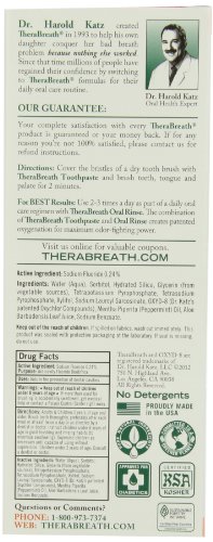 TheraBreath was created by Dr Harold Katz, a UCLA Dentist and Bacteriologist, for his school-age daughter. She was being teased and bullied at school for her breath and he wanted to give her back her confidence. He decided to take a new approach to cleaner teeth and fresher breath by using the natural power of Oxygen to attack hostile germs that live inside the mouth. After extensive clinical trial the TheraBreath formula came to pharmacies, dental offices, and drug stores and has quickly become one of America's best-selling specialty oral care brands.