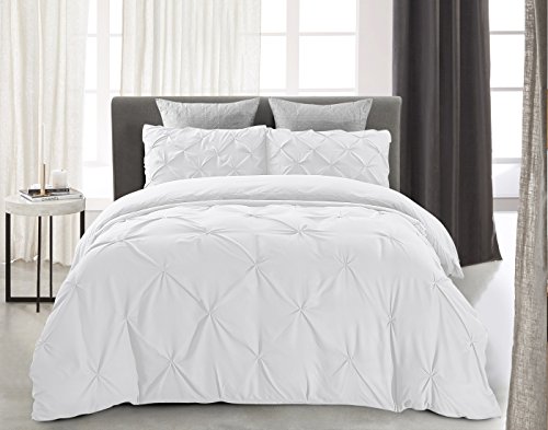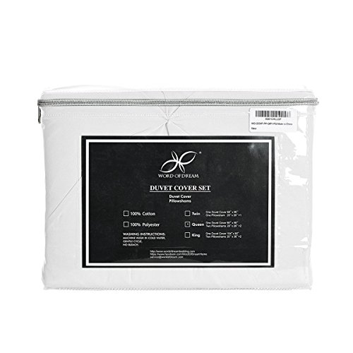Word of Dream Pinch Pleat Microfiber Duvet Cover Set 2 PC, Twin, White