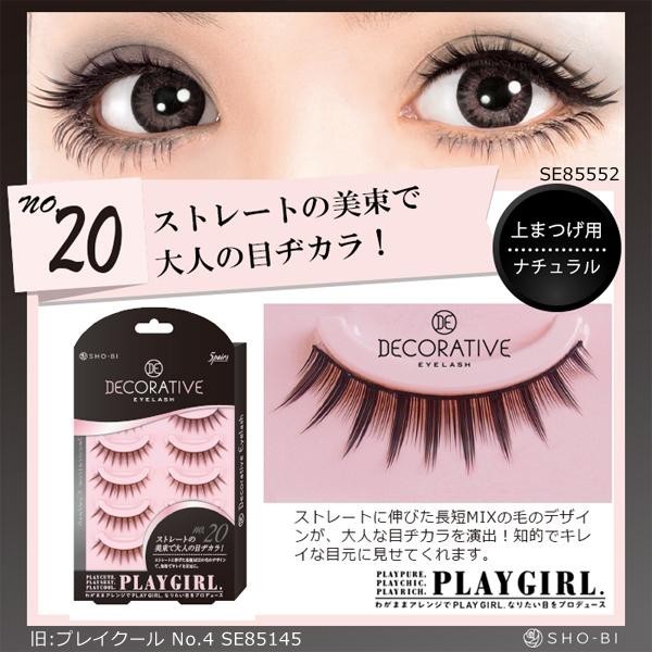 王道の人気つけまつげ「PLAY GIRL(プレイガール)」が、パッケージも新たにリニューアル!使いやすさはそのままに、なりたい目をプロデュースしてくれる、メイクに欠かせないアイテムです。No.20は大人の目ヂカラを演出する、ストレートの美束が特徴のつけまつげです。ストレートに伸びた長短MIXの毛のデザインが、大人な目ヂカラを演出!知的でキレイな目元に見せてくれます。 |