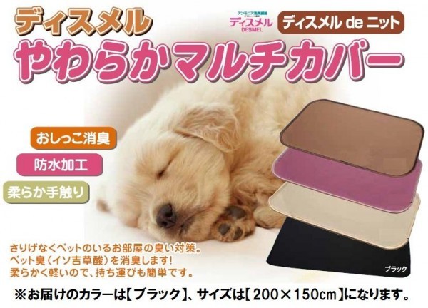 すばやく多量に吸収し、簡単に回復するアンモニア消臭繊維ディスメルのやわらかマルチカバーで、さりげなくペットのいるお部屋の臭いを対策!柔らかい手触りはペットに安心感を与えます。 |