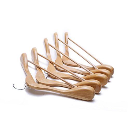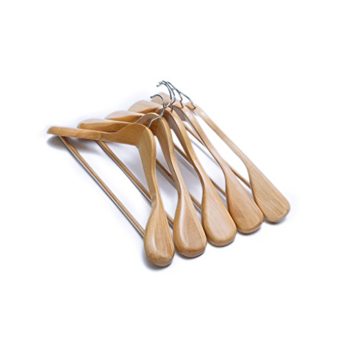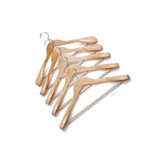Ezihom Clothes Hangers Gugertree Wooden Suit Hangers with Extra-Wide Shoulder, Natural Finish, Wood Coat Hangers, Pant Hangers, 5pcs/Pack