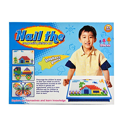 -. Feature : Creative Mosaic Pegboard Mushroom Nails Jigsaw Puzzle Game with Storage Basket for Children Home Kindergarten Educational Toys / Mushroom Nails Jigsaw Puzzle Game Creative Mosaic Pegboard Educational Toys (Random Colors) / 296Pcs Includes hundreds of little mushroom plastic pieces, string, and an instruction book / Develops Children's ,motor skills , imagination, creativity, hand-on learning and logic thinking / It is not fit for children's under 3 years old