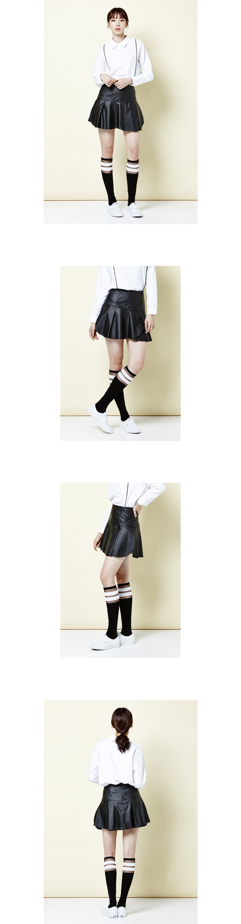 레더의 느낌 때문에 때론 여성스러운 느낌부터 걸리시한 룩까지 여러 스타일리을 할 수 있는 스커트입니다.