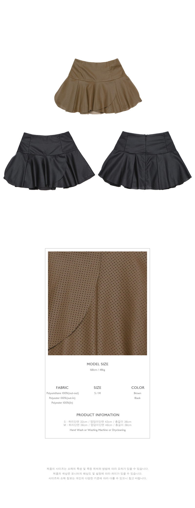 펀칭 처리된 합성피혁을 이용한 머메이드 스타일의 플레어 스커트입니다.