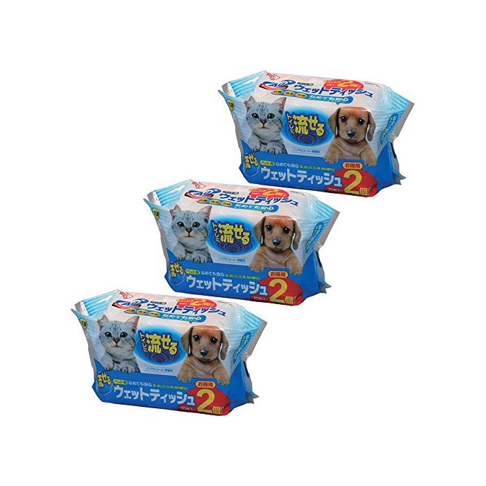 원본상품명:アイリスオ?ヤマ ペット用流せるウェットティッシュ 70枚入