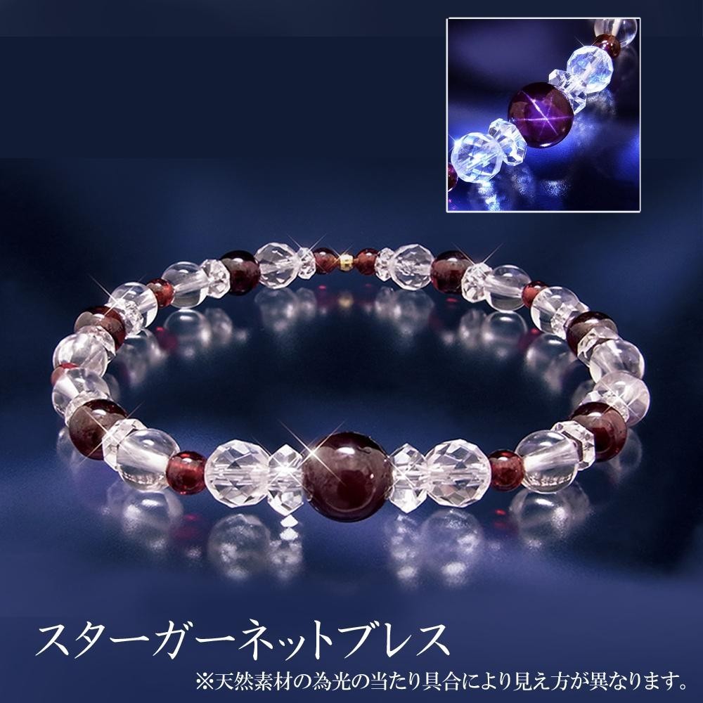 | 光を当てると美しいスターが浮かび上がるスターガーネットが美しい♪1月の誕生石でもあるガーネットと水晶を贅沢に使ったブレスレットです♪ |
