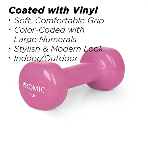 PROMIC Vinyl Dumbbells come in different weights range from 1lb to 20lb for you to vary your daily routine workout, making it great choice for both beginners and advanced fitness enthusiasts alike. Heavy dumbbells are perfect for building massive muscle in arms and shoulders, stability and core strength. Lighter dumbbells are nice additions to add resistance to squats, lunges, aerobic workouts and many more. Benefits of Full Body Workouts