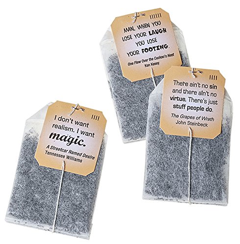Studio : Bag Ladies Tea Publisher : Bag Ladies Tea Binding : Misc. Product Description Novel Teas Pouches contain 25 teabags individually tagged with literary quotes from the world over, made with English Breakfast tea. There is no better company than a steaming cup of tea as you open the cover of a favorite classic or turn the page of the latest thriller. Whether traveling to distant times and far off lands or discovering new characters in a nearby locale, a soothing cup of tea makes the journey more pleasurable and the memory lasting. Novel Teas ~ natures story unfolded in every leaf. Read 'em and steep! 0