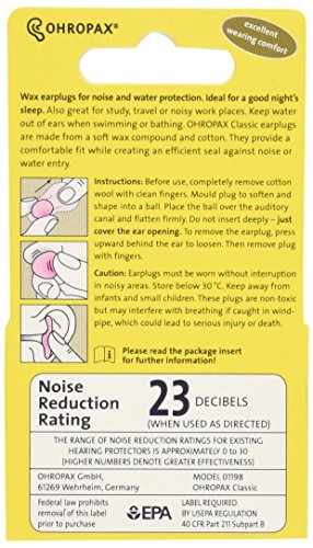 Ohropax Wax Ear Plugs Qty 3 Boxes - Total of 36 Ear Plugs with Free Yellow 6 Compartment Box