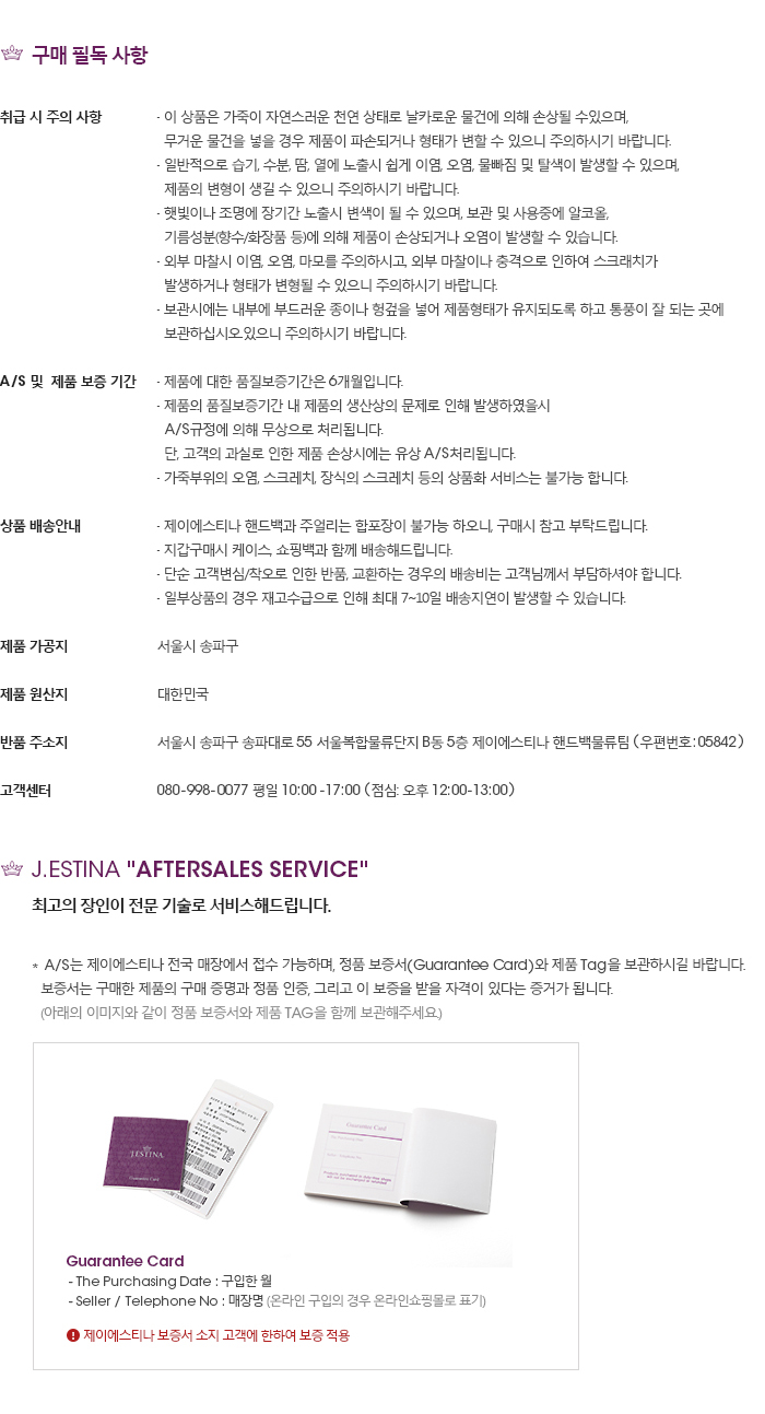 (제이에스티나 사이즈와 중량은 평균치를 기재하므로 약간의 오차가 있을 수 있습니다.)