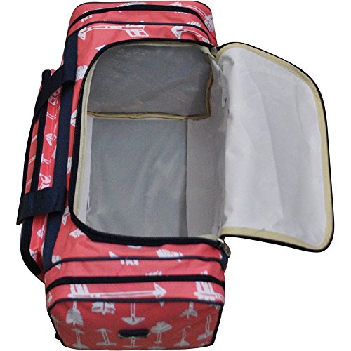 -. Brand : NGIL -. ClothingSize : Medium -. Department : womens -. Feature : Front Zipper Pocket(s), Rubber Feet on the Bottom / Double Zipper Closure, Two side zipper compartments / Carrying straps snap together with Velcro, Adjustable Shoulder Strap / Materials: Canvas / Dimensions: 20"(L) x 10"(H) x 12"(W) -. Model : NCDUF420_000 -. MPN : NCDUF420_000 -. PartNumber : NCDUF420_000 -. ProductGroup : Apparel -. ProductTypeName : LAGE -. Size : Medium -. Title : NGIL Themed Prints Canvas Carry on 20" Duffle Bag