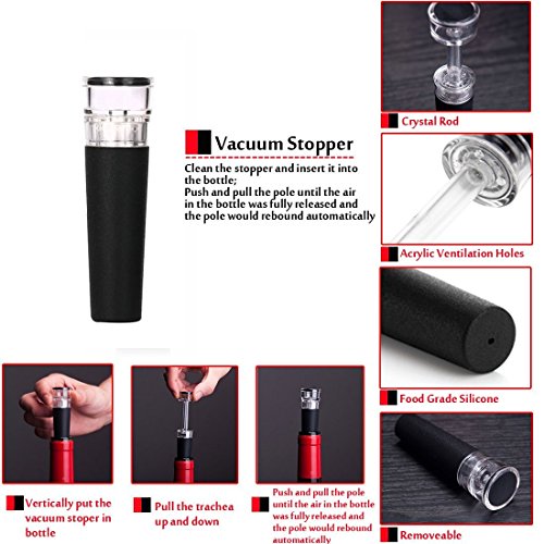 Studio : XHT Publisher : XHT Product Description 1., the operation is simple and convenient, and the design is exquisite and beautiful. 2. humanized design, suitable for all kinds of different specifications of wine bottle mouth, keep the bottle mouth clean and sanitary. 3., the seahorse knife can open a new wine, compared to the traditional red wine tool. 4. the vacuum bottle stopper can draw air from the bottle to a vacuum state, so that the opened drink is kept for more than seven days, and the bacteria and sundries can be effectively prevented from entering the bottle. 5. food safety grade materials, less failures, economical and durable. 6., packaging beautiful, stylish and generous, can be regarded as a gift, promotion jiapin. 0