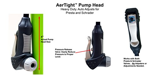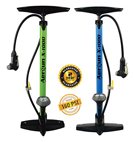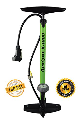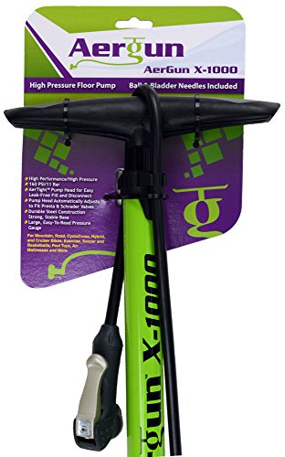 - Feature : HIGH POWER FLOOR PUMP with High Pressure capabilities, up to: 160 PSI (11 Bar). Experience the power of complete air fill from every pump stroke. Easy-to-Read Pressure Gauge with Adjustable Marker for Accurate Fill. Sturdy, Solid Steel Construction with Long, Flexible Hose. Perfect Bicycle Tire Pump for all Bicycle Tires and Other Uses! / STRONGEST GUARANTEE... 2 Year, Iron Clad, No Questions Asked Guarantee! / AFFORDABLE and STYLISH! BALL NEEDLE and BLADDER NEEDLE INCLUDED making it the Ideal Air Pump for: Fitness Ball, Pool Toy, Basketball, Football, Soccer Ball and More. / PLUS: For a LIMITED TIME... With every order, Get Your FREE eBook (.pdf format): "The ABC's of Bike Tires... How To Choose The Best Tires For Your Bike"... a $9.99 Value! (Will be emailed to you) / BEST PUMP HEAD = BETTER BIKE PUMP! The AerTightTM Pump Head is just part of what makes the AerGun® the best bicycle pump available. HEAVY DUTY Steel construction. Automatically fits both Presta and Schrader valves: No fiddling, adapters, or adjustments needed. Easily move between Road, Mountain, Cruiser, Hybrid, and Cross Country Bike Tires. No air loss when removing this pump head from valve. Plus... I you accidentally overfill, this pump head has 'Bleed' valve to quickly and accurately release excess pressure.