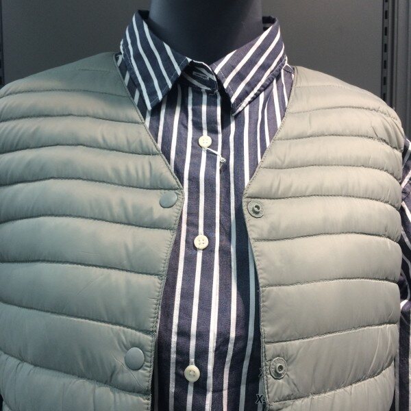 V넥 라이트 다운 베스트입니다 고밀도로 짠 겉감과 방수 가공한 제품입니다