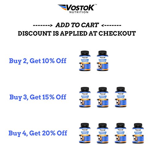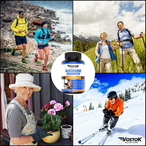 -. Feature : JOINT PAIN RELIEF... for adults of all ages! Our MSM and Glucosamine work together to reduce joint pain without the side effects of dangerous pain killers.* / SPEED UP REPAIR... to recover from sports injuries faster. Give your body enough natural building blocks for cartilage growth and repair! Constantly regenerate and not wait around for more materials. / ADD CUSHION TO JOINTS... with Vostok Chondroitin Sulfate, a major building block of cartilage. It reduces friction by absorbing water to hydrate, and to maintain lubrication & shock absorption. / NON GMO & GLUTEN FREE... Rest easy, our joint formula is manufactured in USA under strict GMP guidelines. Additionally, each product is tested by FDA registered laboratory for purity, potency and label accuracy. / SATISFACTION GUARANTEE... If you are not happy, we don't expect you to pay. That's our commitment and your guarantee. That's 100% Vostok Nutrition.
