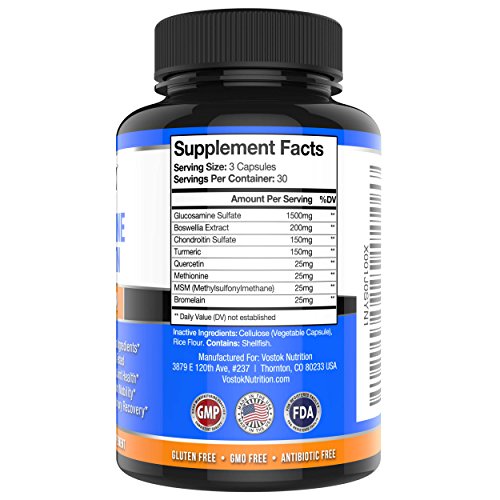 -. Title : Glucosamine Chondroitin MSM Joint Supplement – Natural Joint Pain Relief with Turmeric – Anti-Inflammatory, Cartilage Boosting, Non GMO & Gluten Free - Vostok Glucosamine Sulphate 90 Veggie Capsules