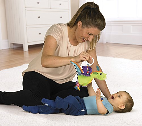 - Feature : Features flapping wings when pulled down from clip / Crinkle & squeaker sounds / Soft fabric tummy / six different materials your baby can explore / Lamaze clip lets you hook Stretch to strollers, carriers and diaper bags / Pull the dragon down to see the his wings flap^Perfect for fun on-the-go^Lamaze clip lets you hook Flip Flap to strollers, carriers and diaper bags