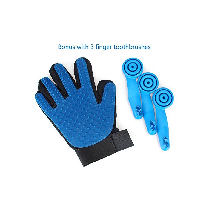 RoyalCare 애완동물 미용 맛사지 장갑,따뜻하게 부드러운 탈모 브러시 장갑 툴 손가락 칫솔3 개부착,고양이와견에게 적#